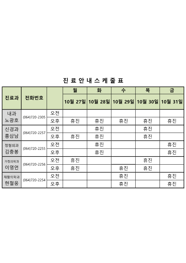 요양병원 외래 진료 일정 (25.10.27.~10.31.)