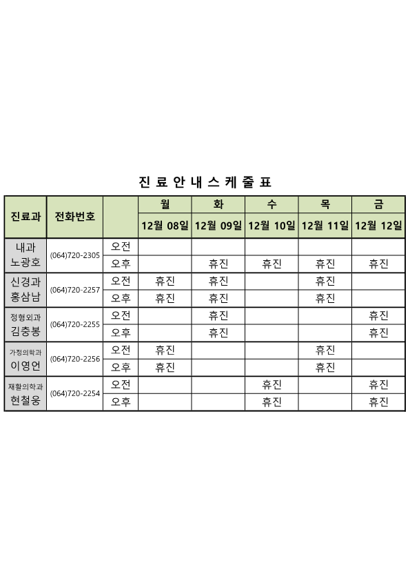 요양병원 외래 진료 일정 (25.12.08.~12.12.)