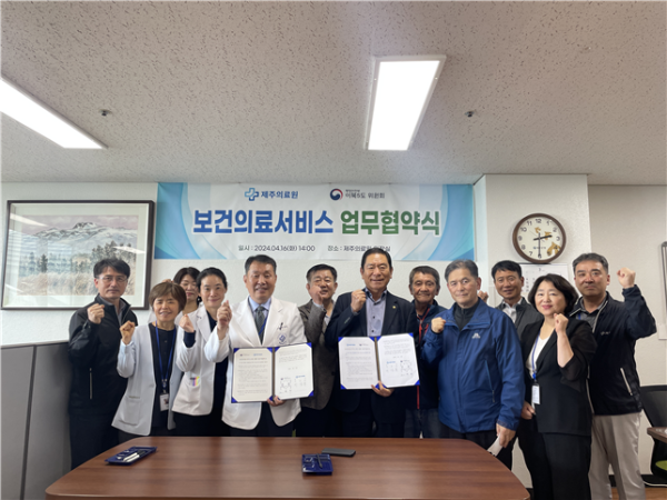 제주특별자치도 제주의료원(원장 이상훈)은 16일 원장실에서 행정안전부 이북5도위원회 제주사무소(소장 송훈)와 보건의료서비스에 관한 업무 협약을 체결했다.