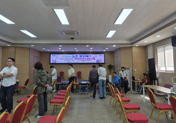제주특별자치도 제주의료원(원장 이상훈)은 12일 의료접근성이 낮은 한경면을 방문하여 한경농협 조합원과 농업인 등100여명의 대상으로 농촌 왕진버스 사업을 실시했다.