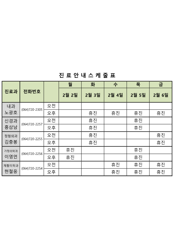 요양병원 외래 진료 일정 (26.02.02.~02.06.)