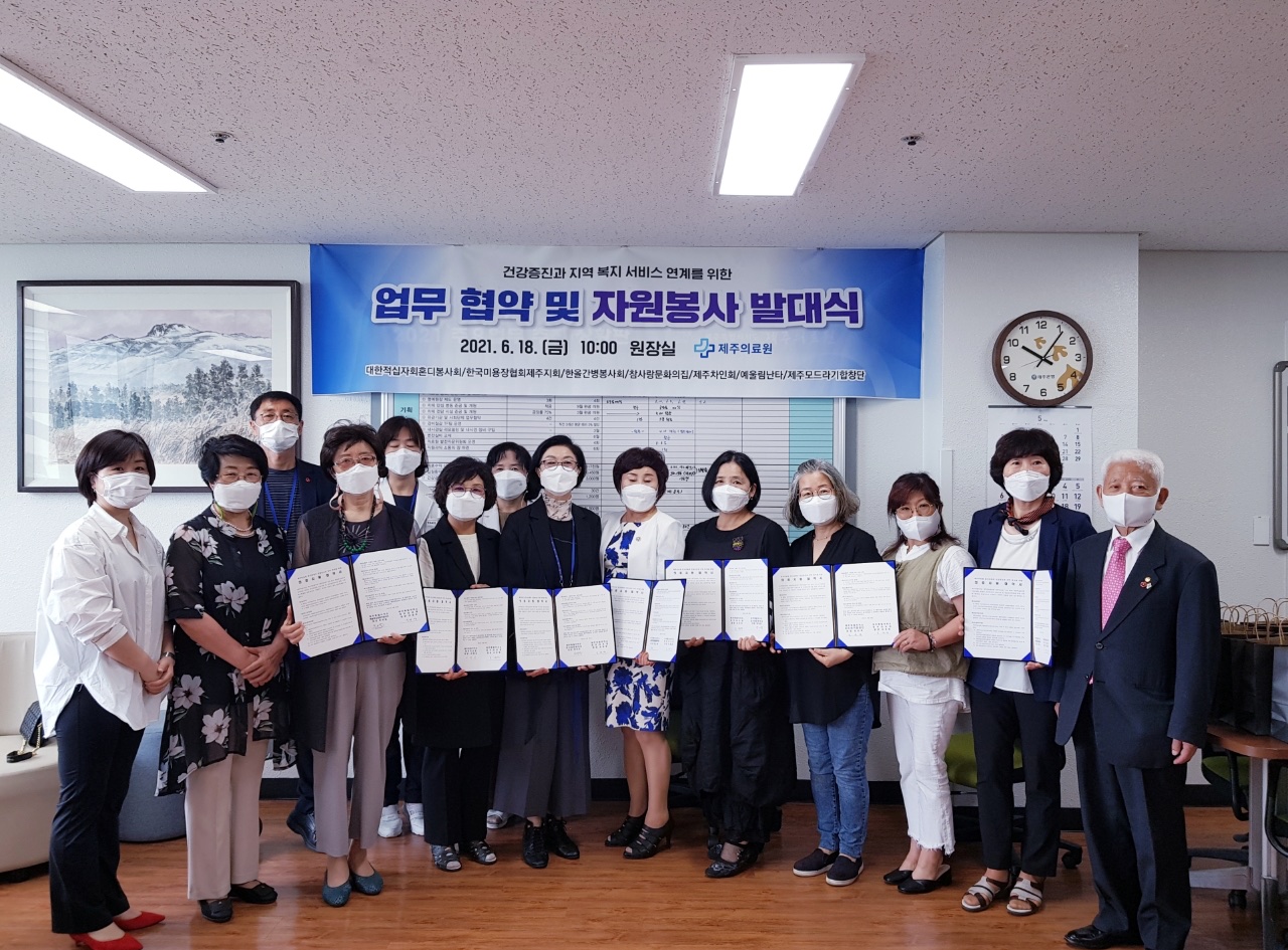 "도민들의 사랑이 제주의료원의 행복입니다."제주특별자치도 제주의료원(원장 오경생)은 18일 원장실에서 자원봉사자의 건강증진과 사회적 가치 실현을 위한 업무 협약을 체결했다.