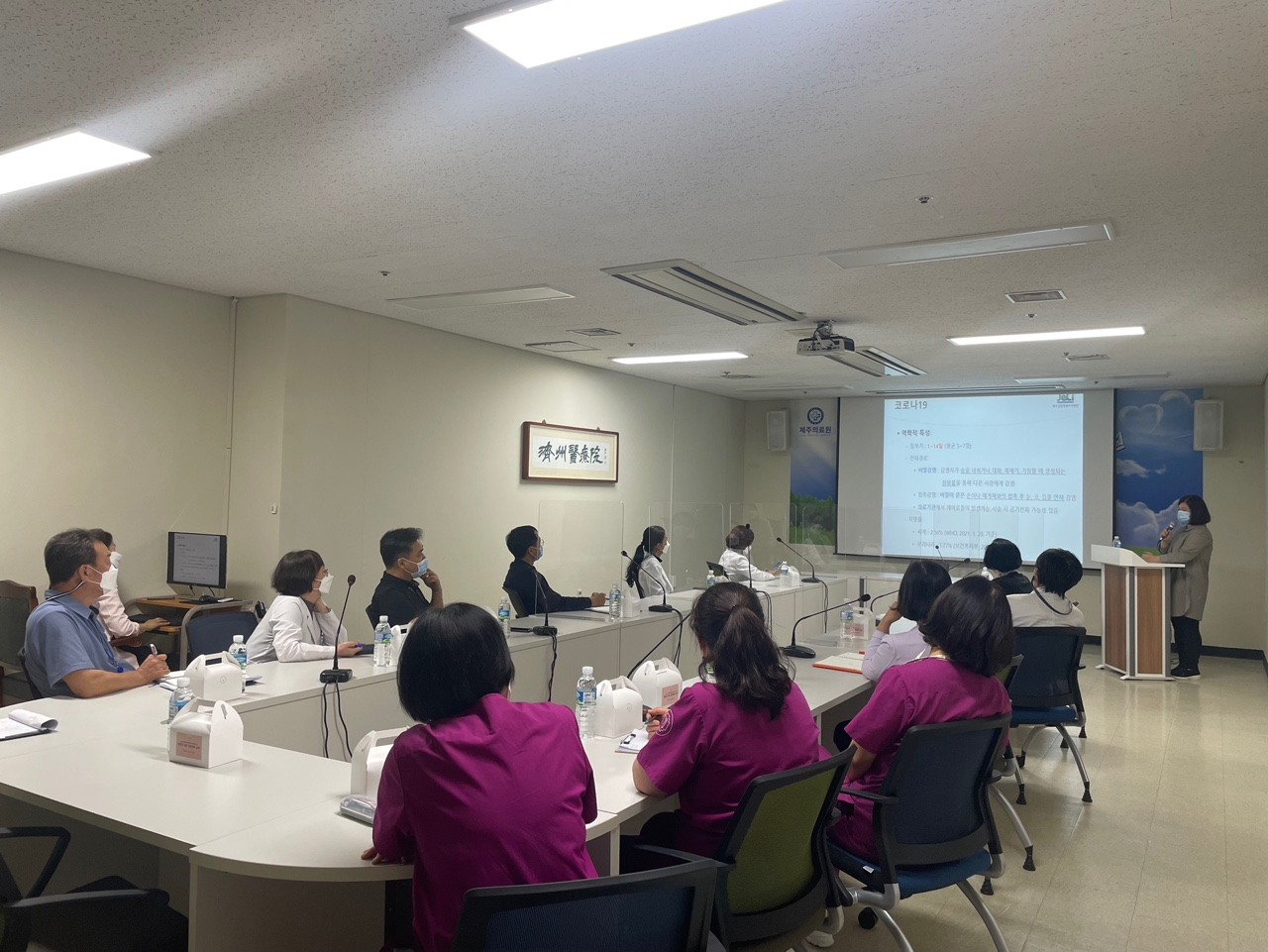제주특별자치도 제주의료원(원장 오경생)은 7일 회의실에서 경영진을 대상으로 감염병 교육을 개최하였다.