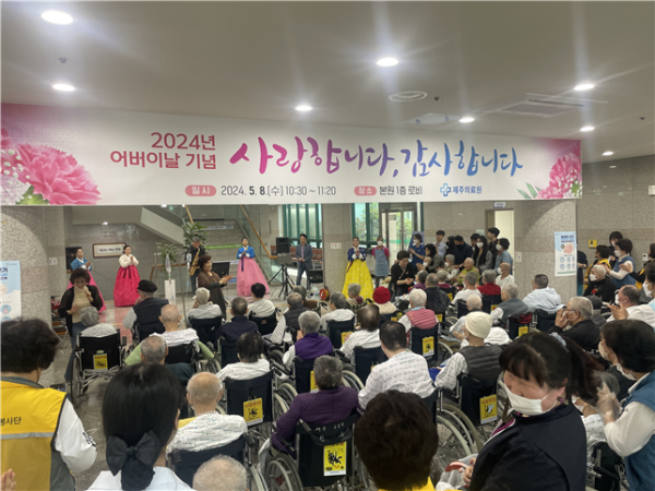 제주특별자치도 제주의료원(원장 이상훈)은 8일 로비에서 어버이날을 맞아 입원환자를 대상으로 감사공연, 카네이션 전달 등 다채로운 행사를 진행했다.