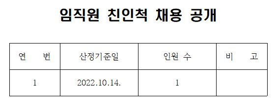 임직원 친인척 채용 공개